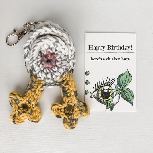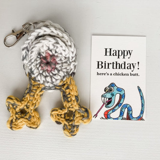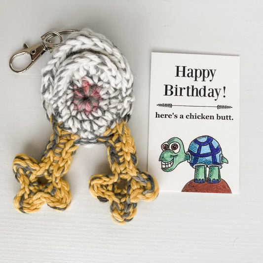 Chicken Butt Keychain Funny Birthday Gift with Novelty Card