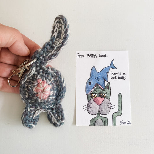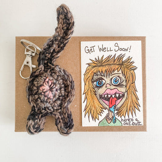 Cat Butt Keychain Funny Feel Better Soon Gift with OOAK Original Art Card