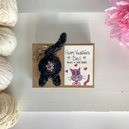 Cat Butt Keychain Valentine's Day Gift with OOAK Art Card