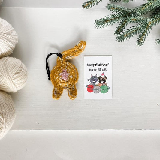 Orange Tabby Cat Butt Ornament Funny Christmas Gift with Card