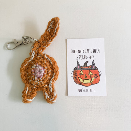 Orange Tabby Cat Butt Keychain Funny Halloween Gift With Card