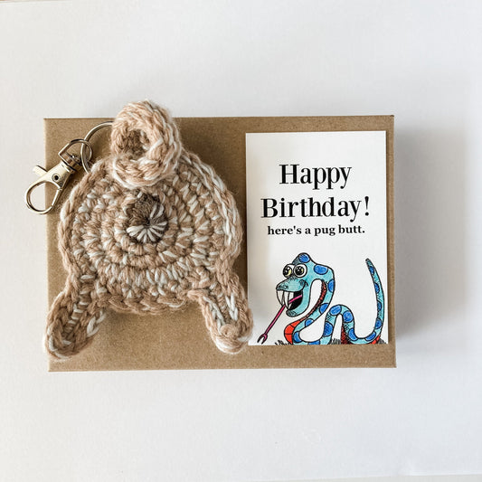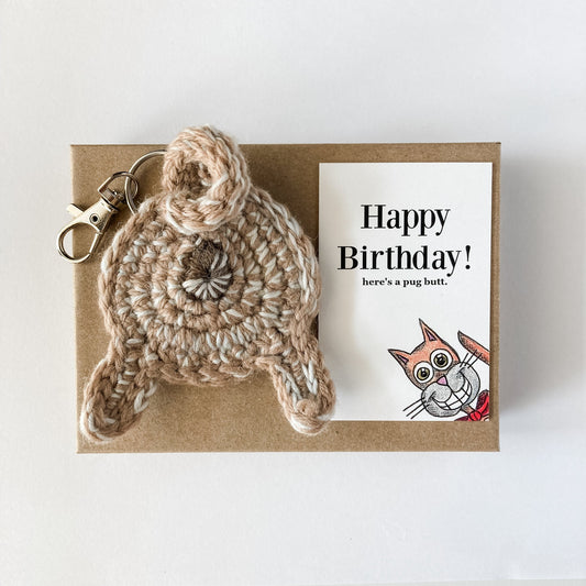 Fawn Pug Butt Keychain Funny Birthday Gift with Novelty Card