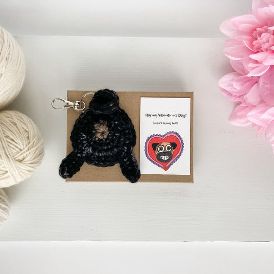Pug Butt Keychain Valentine's Day Gift with OOAK Art Card