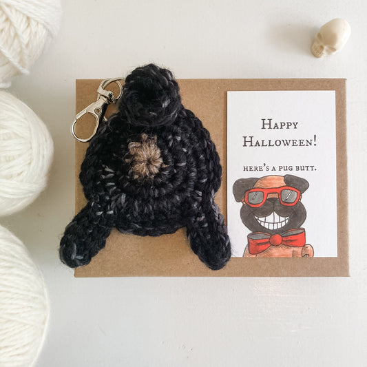 Fawn Pug Butt Keychain Funny Halloween Gift With Card