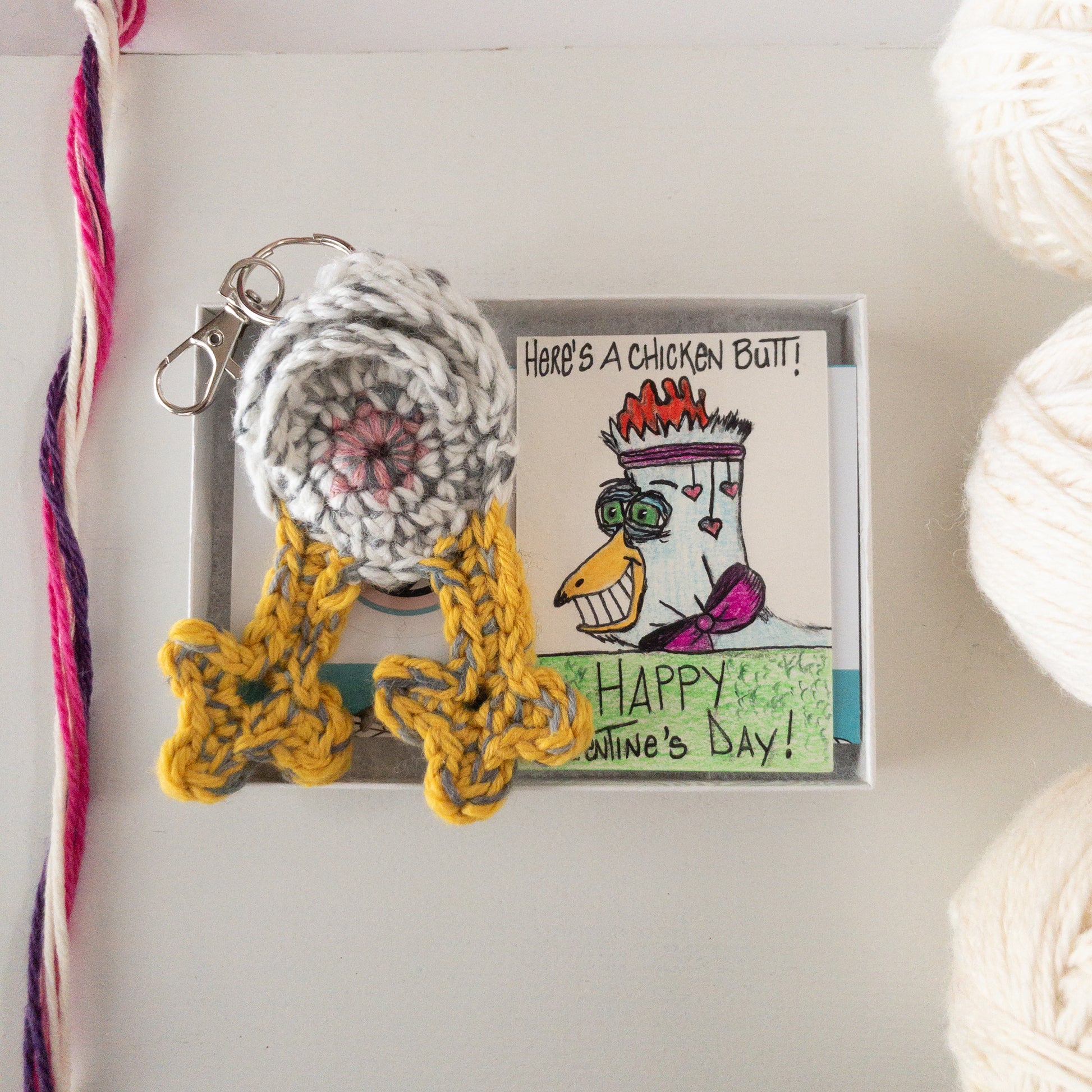 This hilarious Valentine's Day gift set includes one chicken butt keychain and a one-of-a-kind, original art card. You're making the best Valentine's Day gift decision and bringing a little silliness and affection to someone you love.