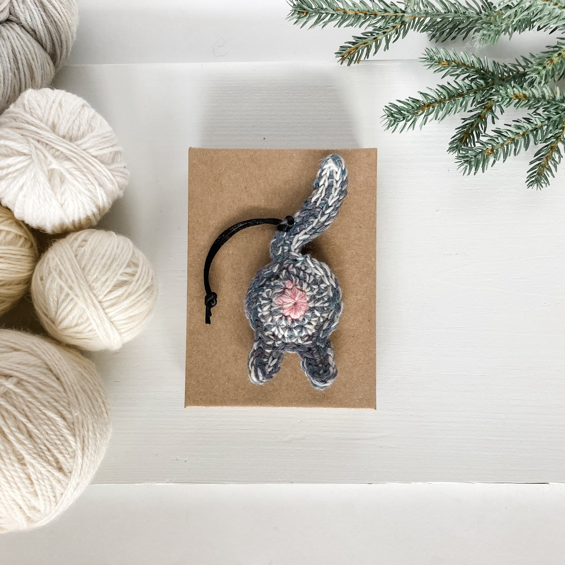 - The gray purple cat butt is hand crocheted out of luxurious 100% wool in a variety of yarn weights to create depth and texture.
