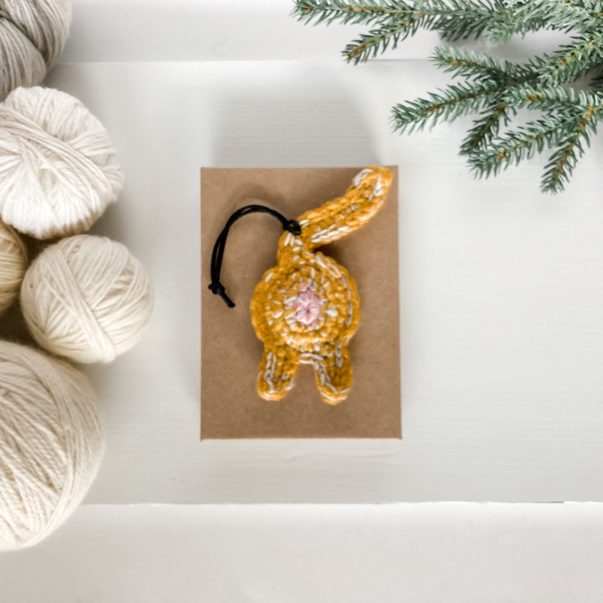 - The orange tabby cat butt is hand crocheted out of luxurious 100% wool in a variety of yarn weights to create depth and texture.