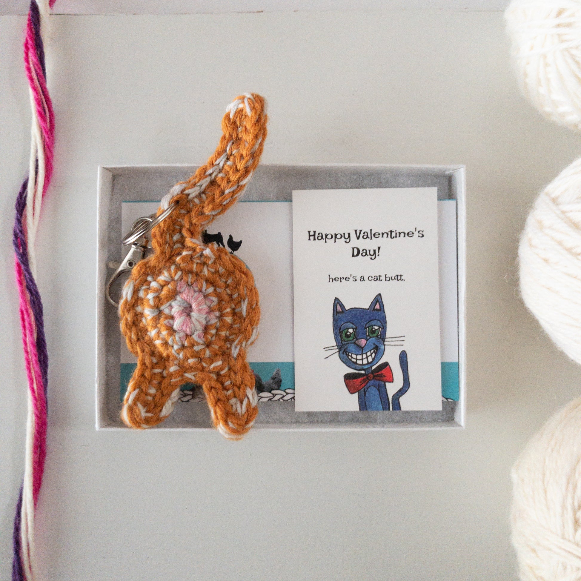 ORANGE TABBY CAT BUTT KEYCHAIN WITH VALENTINE'S DAY CARD