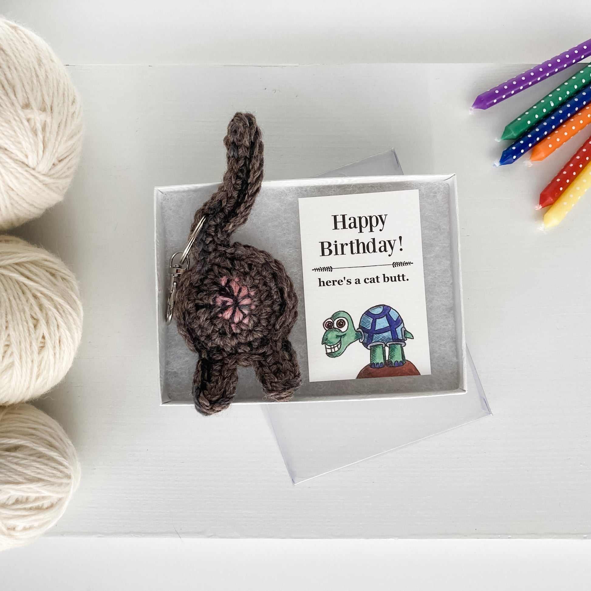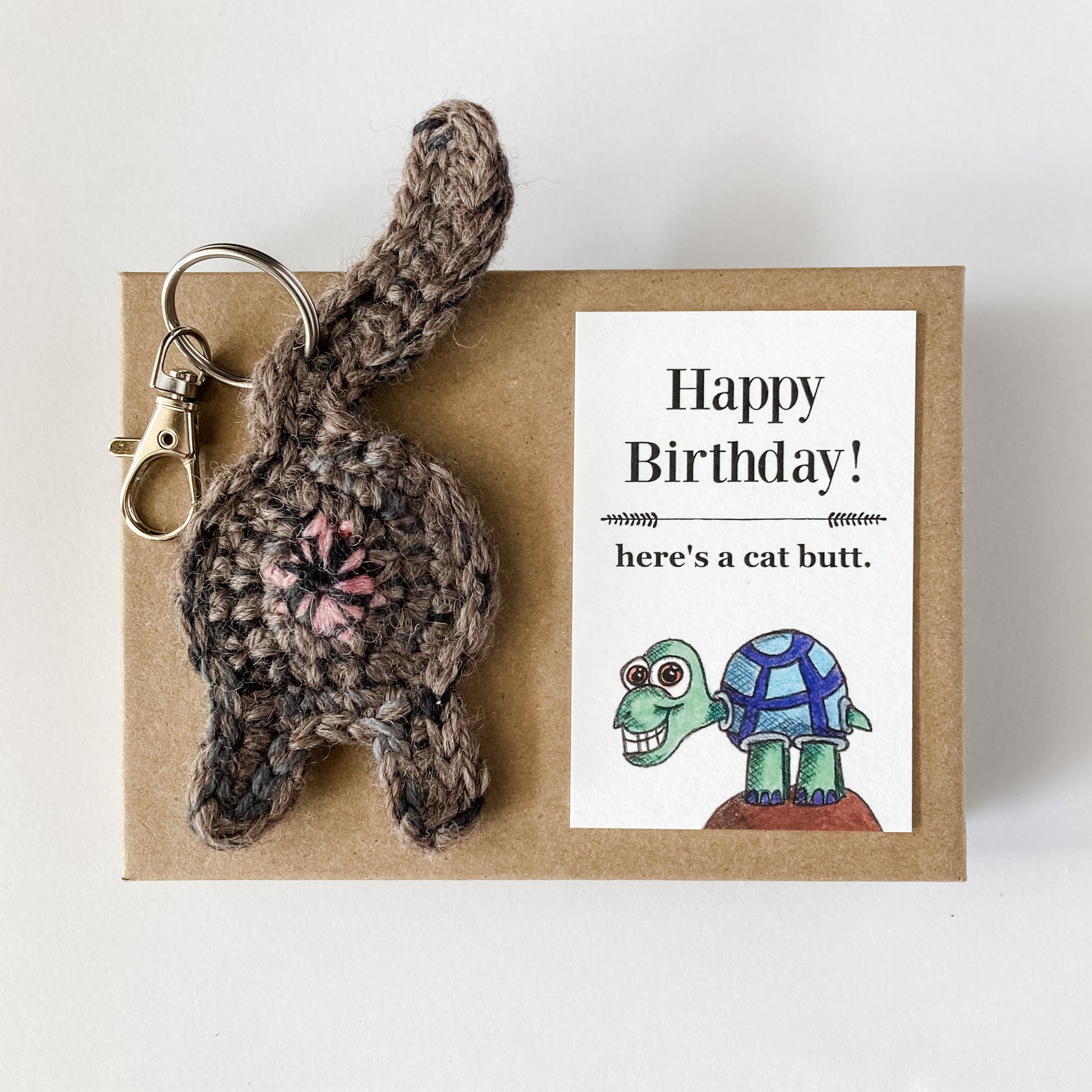 This hilarious birthday gift set includes one brown cat butt keychain and a hilarious birthday collectible art card. You're making an awesome birthday gift decision and bringing a little silliness (and affection) to someone you love.