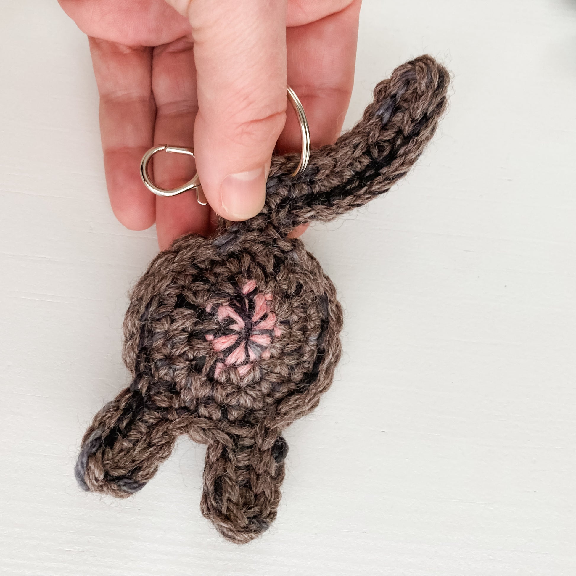 - The brown cat butt is crocheted out of luxurious 100% wool in various yarn weights to create depth and texture.